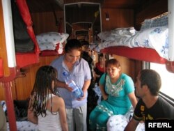 "Первые два дня наши пассажиры выглядят грустными и печальными, только ближе к Казахстану они несколько оживают", - предупредила нас проводница Хусния Закирияева, когда мы с оператором Александром Кулыгиным стали распаковать нашу киноаппаратуру. "Другое дело, когда они возвращаются домой: лица радостные и довольные, болтают без умолку".