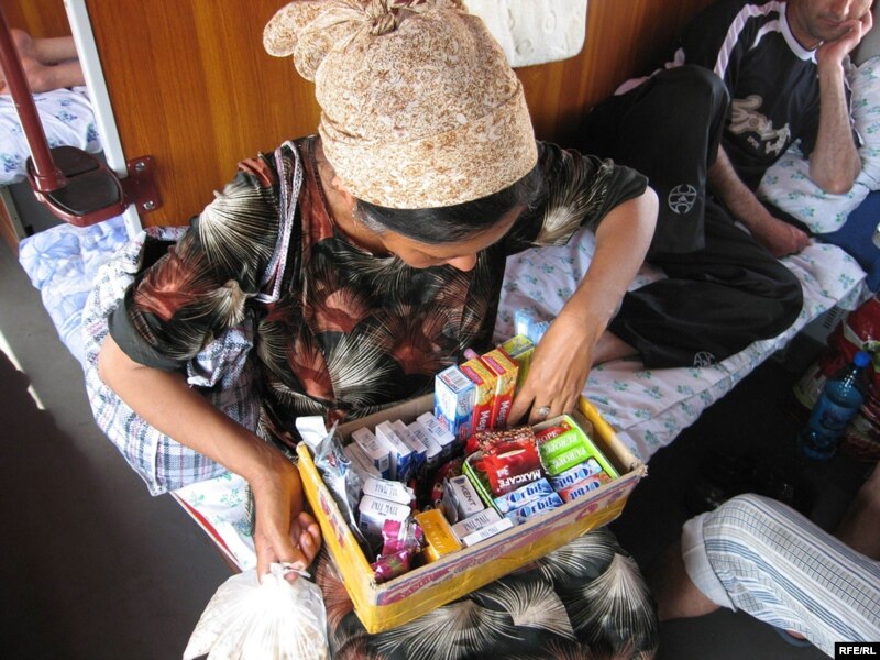 Поезд "Душанбе-Москва" - это не просто железнодорожный состав, который перевозит людей, но и бизнес-площадка. Нашествие армии "мешочников" и "челноков" началось еще в Узбекистане. Они садились почти на каждой промежуточной станции и буквально за пару часов оккупировали весь состав. В проходах и тамбурах было не разойтись. В иное время в отсеки вагона запихивались по 10-15 человек - с сумками, коробками, с сетками и пакетами.