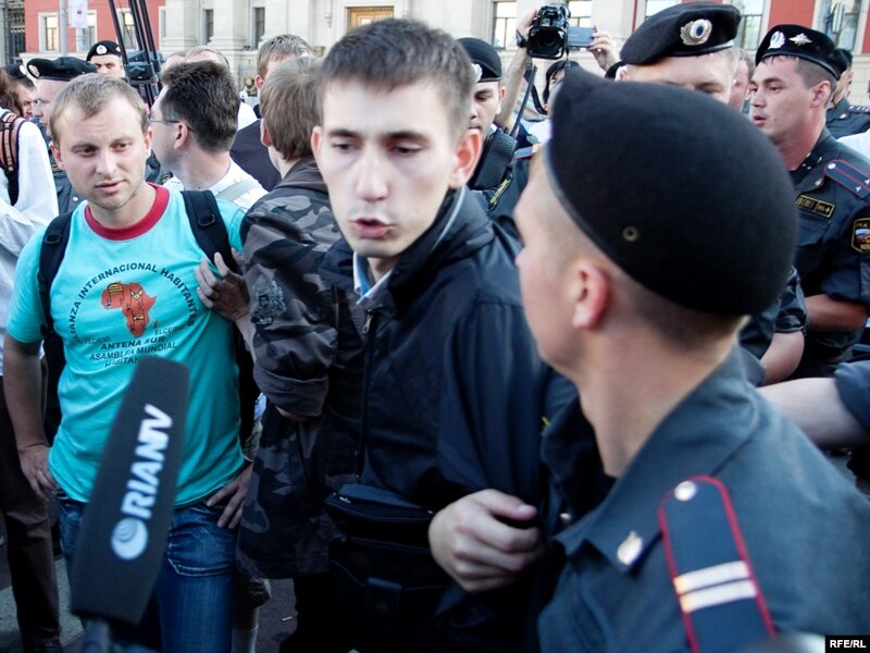 В течение следующего часа милиция через мегафон просила всех разойтись и не мешать проходу граждан. Тех, кто пытался объяснить свое право находиться где ему хочется, провожали в автобус.
