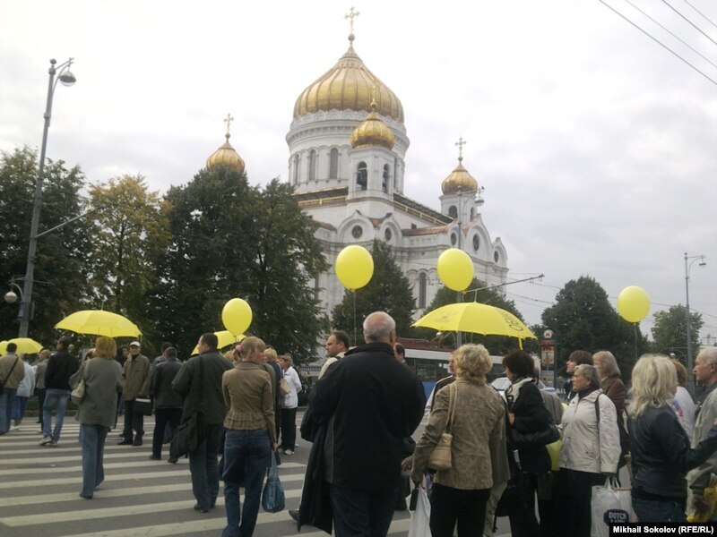 Организатором акции стало межрегиональное общественного движения "Защита прав участников строительства жилья" ("Однодольщики"). В руках демонстранты держали желтые воздушные шарики или желтые зонтики. Сотрудники ГИББД и милиции ничего не могли сделать, поскольку действия демонстрантов находились в рамках правил уличного движения. Участники акции не нарушали и Кодекс об административных правонарушениях. Милиции пришлось разворачивать перед занятым участниками акции пешеходным переходом сотни машин, двигавшихся в сторону Кремля или от него.