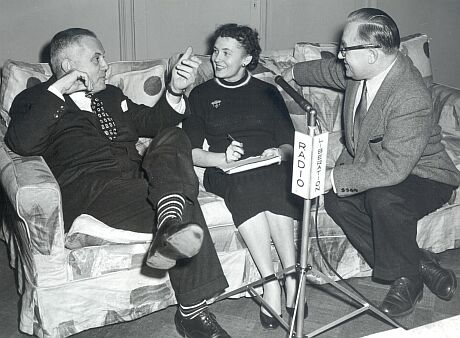 Мы остаемся в Америке, но переходим теперь к более легкой теме, точнее, возвращаемся к музыке. В 1955-м году два наших сотрудника, диктор Виктория Семенова и редактор Михаил Коряков, посетили известного композитора Вернона Дюка (Владимира Дукельского), который остановился в Нью-Йорке в квартире своего друга голливудского киноактера Марлона Брандо. 57-ая улица. В открытые окна слышны автомобильные гудки летнего Манхеттена.