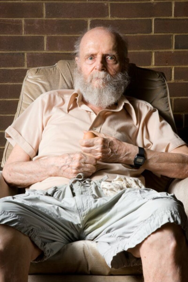 Ирина Цезарь: Это другой пример того, как я использую метафорический или символический объект. Я создаю определенные концептуальные, смысловые ситуации, прошу героев воплотить какую-то идею, и эта идея воплощена метафорически, афористично, за счет манипуляций или концептуального действия с каким-то символическим предметом. В этом портрете основная идея была как раз выразить неконформность и конфронтацию. Ситуация, когда известный диссидент Павел Литвинов мнет пластиковый стакан, выражает его жизнь — то, как он ломает советскую рутину, социальную машину, которая превращает людей в функционирующие гайки. И этот жест спровоцировал его на осознание своей жизни, которая была поломана страшной тоталитарной машиной, и этот жест спровоцировал его просто отпустить ужас, поэтому ужас и выразился у него в глазах.