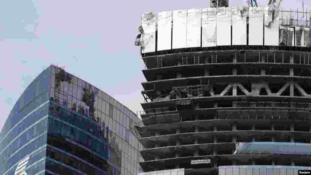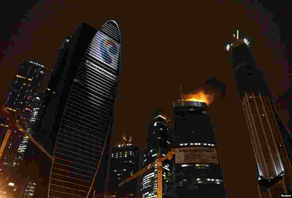 Основная версия причины пожара в башне «Восток» делового центра «Москва-сити» - тепловое воздействие прожектора, установленного на строительном кране, на легковоспламеняющийся материал.