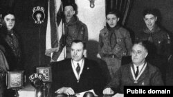 Александр Васильев: Роль Эрла Браудера в советской разведывательной деятельности в Соединенных Штатах была огромной. В документах разведки он проходит под кличкой «Рулевой». Наш рассказ надо начать с того, что в 1930 годы Браудер создал информационную сеть Коммунистической партии в государственных учреждениях США. Эта сеть снабжала информацией руководство партии. В то время в Америке создавались новые министерства и ведомства, которые должны были осуществлять политику президента Франклина Рузвельта. Появилось большое число рабочих мест, которые надо было заполнять более-менее образованными людьми. Оказалось, что среди членов компартии США было много образованных людей. Причем ФБР проводила проверку, сообщала о том, что они коммунисты, что их верность Америке может быть поставлена под сомнение. Однако Рузвельту нужны были новые способные чиновники и на предупреждения ФБР часто просто не обращали внимание.