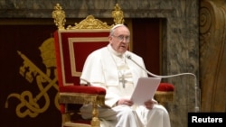 Он подтвердил, что избрал себе имя в честь жившего в 12-13-м веках святого Франциска Ассизского, которого он назвал человеком "нищеты и мира".