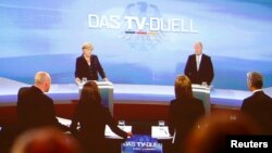 В Германии 22 сентября пройдут выборы в бундестаг, которые определят и состав нового правительства. Каждая партия выставляет своего кандидата, который, в случае победы партии, может стать федеральным канцлером. 1 сентября более семнадцати с половиной миллионов немцев (вместо ожидаемых пятнадцати миллионов) наблюдали у экранов телевизоров за единственной запланированной теледуэлью нынешнего канцлера Ангелы Меркель с Пеером Штайнбрюком, лидером второй по популярности социал-демократической партии, в предыдущем правительстве "большой коалиции" во главе с Меркель занимавшим пост министра финансов.