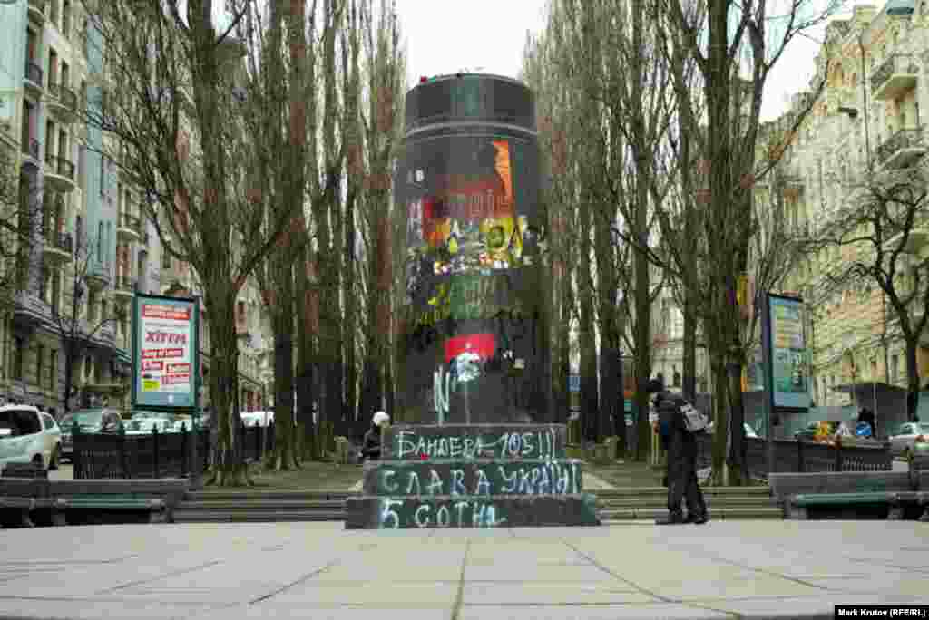 Бульвар Тараса Шевченко, постамент памятника Ленину, снесенного активистами левых оппозиционных партий и движений 8 декабря 2013-го года