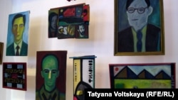 Это впечатление усиливается, когда переходишь во второй, маленький зал, где этот воздух как будто сгущен едва ли не до состояния взрыва: это работы Григория Кацнельсона, посвященные нескольким известным писателям, а также Геннадию Гору, автору замечательных блокадных стихов. На одной стене – фрагменты авторской книги Григория Кацнельсона "Геннадий Гор. Стихи 1942-1943", на других – портреты Калужнина, Кордобовского, Гора, Вагинова, Хармса, Друскина и других персонажей "круга Гора", написанные специально для проекта "Блокада. До и после". Александр Ласкин объясняет, что это мемориальный зал людей 20-х – 30-х годов, трагически ушедших из жизни, – Филонов, умерший во время блокады, Хармс, погибший в тюрьме во время войны, Шостакович, Добычин, Вагинов. "Это такие мемориальные доски, причем очень важно, что Григорий Кацнельсон – человек молодой, если Калужнин и Кордобовский завершили свой путь в 60-70-е годы, то Кацнельсона от блокады отделяет три поколения, но странным образом у него есть такая уникальная способность откликаться на события прошлого".