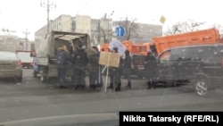 Пушкинская площадь и близлежащие улицы Москвы уже перекрыты - идет подготовка к "Шествию в поддержку украинского народа, против провокаторов, захвативших власть в Киеве", организованному российскими властями. Из "Газели" пачками выгружают плакаты "Слава Беркуту"