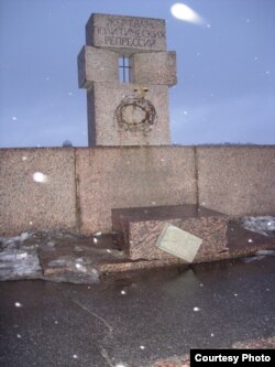 В Санкт-Петербурге частично разрушен памятник жертвам политических репрессий, установленный напротив дома №12 на Воскресенской набережной у спуска к Неве. Один из гранитных камней, лежащих в основании монумента и крепившийся к остальным с помощью металлических штырей, выломан из своего гнезда и лежит перевернутый рядом с памятником. Остальные части композиции – венок из колючей проволоки, каменная книга и два бронзовых сфинкса работы скульптора Михаила Шемякина – не пострадали.