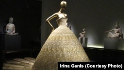 Удивительным образом именно декадентские излишества XVIII века стали предметом подражания для современных модельеров, развивающих те же черты моды – безумную роскошь, тотальную непрактичность и изощренную фантазию. Всем этим привлекает толпы зрителей коронный экспонат выставки: золотое платье китайской Гао Пей. Отличившаяся своими костюмами на открытии Пекинской олимпиады, она представила на выставку платье из роскошной парчи. Подол этого царственного наряда изображает лепестки лотоса и покрывает ползала, которой в обычные, а не праздничные, как сейчас, дни отведен буддийской скульптуре. Конечно, в таком драгоценном платье нельзя ходить, сесть или танцевать. В нем можно только стоять, позволяя на себя смотреть. Не зря оно напоминает шедевр восточного зодчества и выглядит как золоченая ступа буддистов.