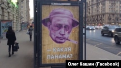 В центре Москвы на одной из остановок общественного транспорта неизвестные повесили плакат с изображением президента России Владимира Путина и подписью: "Какая Панама?". Фотографию размещенного плаката в "Фейсбуке" опубликовал журналист Олег Кашин.