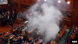 В Косове во вторник оппозиция распылила в зале заседаний парламента слезоточивый газ, чтобы помешать принятию соглашения о демаркации границ с Черногорией, передает Reuters. Сообщается, что в это же время несколько человек забросали здание парламента камнями. Неизвестные также поместили взрывное устройство в доме главы комиссии по вопросу границы, сообщил премьер министр Иса Мустафа.