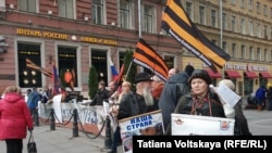 Одновременно с акцией против сирийской кампании на Невском проспекте прошел массовый пикет активистов "Национально-освободительного движения", НОД.