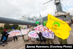 В воскресенье в Петербурге группа клоунов-милитаристов захватила крейсер “Аврора”, требуя увеличить российский военный бюджет.