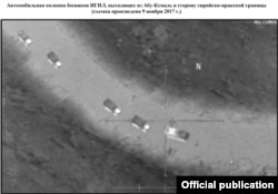 Вглядитесь в эту мутную картинку. На ней, по словам российского Минобороны (которые оно позже взяло назад), представлено “неоспоримое подтверждение обеспечения Соединенными Штатами прикрытия боеспособных отрядов ИГИЛ”.