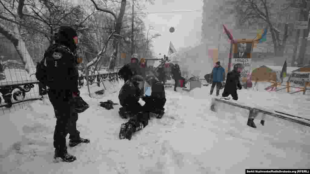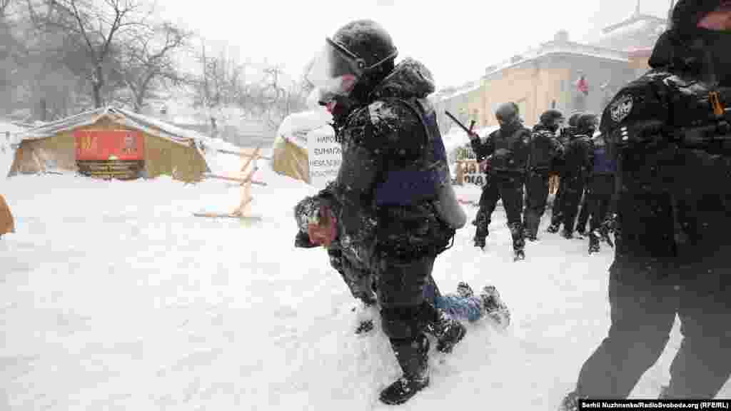 Полиция доставила в участки Киева более сотни людей во время "следственных действий" возле здания Верховной Рады. В пресс-службе Национальной полиции Украины сообщили, что операция правоохранительных органов проводилась в рамках уголовных производств, одно из которых открыто по факту попытки захвата Международного центра культуры и искусств (Октябрьский дворец), а другое касается событий у стен Верховной Рады, которые состоялись 27 февраля. Кроме того, как сообщалось, сейчас начато уголовное производство по статье 345 Уголовного кодекса Украины ( "угроза или насилие в отношении работника правоохранительного органа"). В полиции заявили, что во время проведения следственных действий на территории палаточного городка возле Верховной Рады правоохранители изъяли девять гранат РГД-5, запалы, "коктейли Молотова" и пять дымовых шашек.