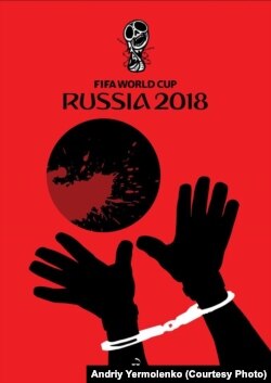 В Петербурге перед матчем за третье место чемпионата мира по футболу был задержан общественный активист Егор Екимов, который проводил одиночный пикет у входа на стадион. Екимов стоял с заклеенным ртом, в руках он держал плакат украинского художника Андрея Ермоленко, на котором вместе с логотипом ЧМ-2018 изображен земной шар с тянущимися к нему руками в наручниках.