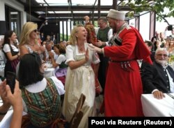 • Путин сплясал на свадьбе министра иностранных дел Австрии, вошедшей в правительство по квоте крайне правой Партии свободы. Подарил самовар, показал казаков с балалайками.