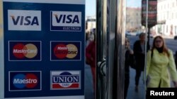 • С 1 апреля 2015 года в России начала работать национальная система платежных карт "Мир". Необходимость ее создания возникла летом 2014 года, когда Visa и MasterCard из-за санкций США против России прекратили обслуживать карты некоторых российских банков, в первую очередь тех, которые ведут бизнес в аннексированном Россией Крыму.