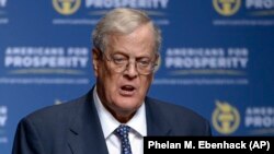 Широкую известность получила политическая деятельность братьев Кох. Сами они не баллотировались на выборах, однако поддерживали близких их по взглядам кандидатов, а также были одними из крупнейших спонсоров Республиканской партии. Дэвид Кох придерживался правых взглядов, сочетавших элементы консерватизма и либертарианства. Финансовая поддержка братьев Кох помогла взлёту популярности так называемой "Чайной партии", что способствовало успехам республиканцев на выборах в Конгресс во времена президентства Барака Обамы. Отношения братьев Кох с Дональдом Трампом, однако, были прохладными.