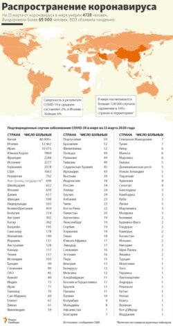 На утро 13 марта в Италии зарегистрировано больше 15 тысяч случаев заражения, количество умерших превысило тысячу человек.