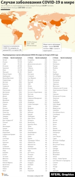 По последним данным, число заразившихся COVID-19 в Италии к середине дня 23 марта приблизилось к 60 тысячам. Умерли 5 тысяч 476 человек.