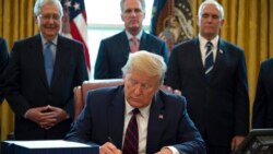 Президент США Дональд Трамп подписал закон о беспрецедентных мерах по спасению американской экономики от последствий кризиса, связанного с пандемией коронавируса. Палата представителей одобрила этот пакет на сумму 2,2 триллиона долларов.