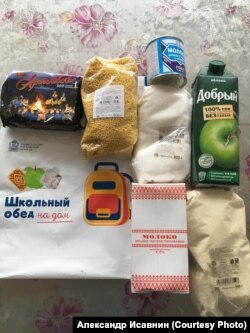 Вот так выглядит продуктовый набор для школьников, которые имеют право на бесплатное питание. Ранее власти Москвы и Московской области говорили, что будут обеспечивать такими наборами учеников на время закрытия школ из-за эпидемии коронавируса. Это фото любезно предоставил Радио Свобода житель подмосковного Красногорска Александр Исавнин: