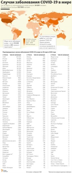 Согласно ним, число умерших впервые снизилось после нескольких дней роста и составило 812. Всего от коронавируса в этой стране умерли 7340 человек, выявлено 85195 случаев заражения. Вот данные по остальным странам мира (без учета новой информации из Испании):