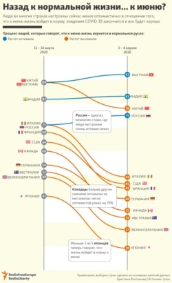 Не во всех странах люди надеются на скорое возвращение к обычной жизни из-за эпидемии коронавируса. Посмотрите, как изменилось отношение к этому за последний месяц: