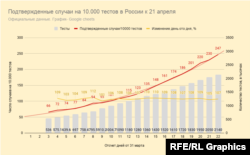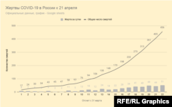 Продолжает расти и число смертей от коронавируса, но их количество относительно невелико в сравнении с общим количеством подтвержденных случаев (что тоже может быть свидетельством раннего этапа эпидемии в России).
