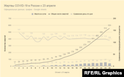 Снижается и количество смертей в день – хотя обычно этот показатель запаздывает за торможением графика новых случаев.