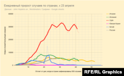 В сравнении с графиками стран, наиболее пострадавших от коронавируса, видно – Россия, по официальным данным, достигла пика – примерно на уровне Италии.
