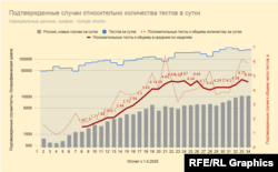 Также остается низким, хотя несколько растет, процентное соотношение положительных тестов на коронавирус к их общему числу - порядка 5 процентов. Последние пару дней уровень тестирования, по официальным данным, снова несколько снизился с уровен, и если количество выявляемых случаев и дальше будет коррелировать с количеством тестов с задержкой в пару дней, то и число новых случаев прекратит расти.