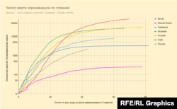 По общему числу подтвержденных случаев Россия выходит на второе место после США. А в сравнительном графике тех же стран по количеству жертв Россия – гораздо ниже, причем это уже невозможно было объяснить тем, что в стране позже началась эпидемия, – она сейчас на пике. Российские власти утверждали, что причина низкой смертности – активное тестирование и хорошая работа системы здравоохранения, но, как следует из разъяснений, еще и из-за особенностей учета.