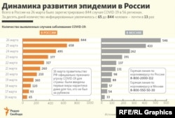 Впрочем, в Кремле считают, что эпидемии в России нет, о чем 26 марта заявил журналистам пресс-секретарь Путина Дмитрий Песков. "У нас де-факто эпидемии нет, и де-факто у нас ситуация гораздо лучше чем во многих странах," – цитирует слова Пескова "Коммерсант".