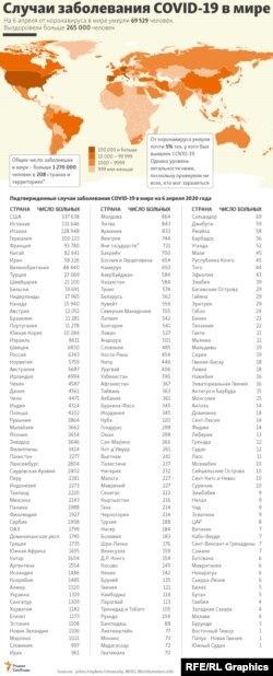Промежуточная статистика пандемии коронавируса на 23 часа 50 минут по московскому времени, воскресенье, 5 апреля.