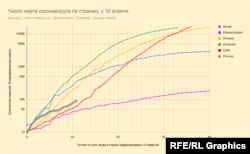 Это тревожный момент – пока не происходит "выравнивания" графика, поскольку пик смертности запаздывает за этим графиком – а уже сегодня мэрия Москвы (основного очага заболевания в России) сообщила о достижении предельной нагрузки на больницы.