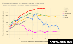 В других странах, где эпидемия началась раньше, "плато" в графиках ежедневных новых случаев уже достигнуто – и даже началось снижение.