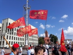 На площади Независимости в Минске, где начинается митинг в поддержку Александра Лукашенко, собралась группа около 50 человек, которая скандирует "За отца!", "За Беларусь". Участники держат в руках официальные белорусские флаги и флаг России.