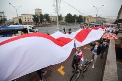 Участники "Марша новой Беларуси" заняли почти всю площадь Независимости в центре Минска, а также прилегающие улицы. Многие участники говорят, что впервые принимают участие в политической акции протеста.