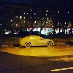 Асфальт у "генеральского дома" вспучился, из недр пошли густые грунтовые воды болотно-жёлтого цвета