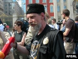 Мало кто из пришедших на Тверскую площадь сомневался, что в полдень напротив мэрии начнутся бурные события. Омоновцы оцепили по периметру всю территорию вокруг памятника Юрию Долгорукому и никого к монументу не пускали. Милиция стояла везде: на Тверской, у здания мэрии, у подземных пешеходных переходов. Несколько десятков журналистов с телекамерами приготовились к встрече пикетчиков. Но первыми на площади появились люди в черной униформе и представились как члены союза православных хоругвеносцев. Одного из лидеров этого движения, Игоря Мирошниченко тут же окружили журналисты. Он им сообщил следующее: