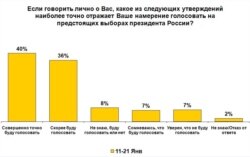 45% россиян не уверены, что президентские выборы проводят честно. При этом 44% опрошенных считают, что обязаны принять участие в голосовании. Как показал опрос, проведенный Аналитическим центром Юрия Левады по заказу Радио Свобода и американской компании InterMedia Servey Institute, это и есть основной побудительный мотив для граждан России.