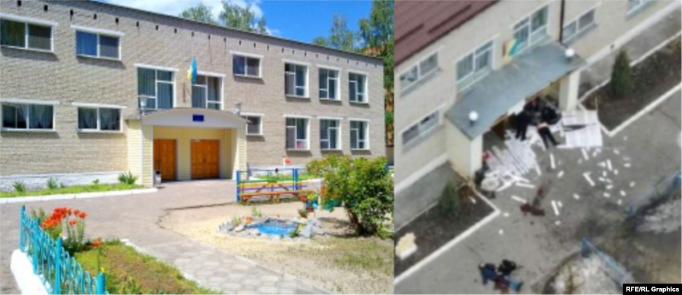 Радио Свобода верифицировало фотографии, на которых показаны последствия обстрела детского сада в городе Ахтырка Сумской области.