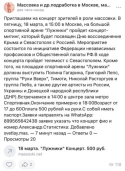 Власти России платят деньги за участие в массовых мероприятиях в поддержку вторжения в Украину