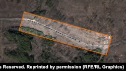 Радио Свобода изучило спутниковые снимки "Рыжего леса", сделанные с начала войны. Мы не увидели на них следов проезда техники непосредственно через территорию леса или следов сооружения укреплений. Тем не менее, нам удалось заметить на одном из снимков колонну из 32 российских военных грузовиков и машин, двигающихся вдоль "Рыжего леса" в направлении ЧАЭС. Снимок был сделан 16 марта.