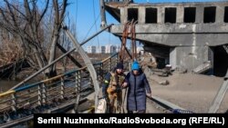 В Киевской области построен временный мост, соединяющий Бучу и Ирпень с Кивевом. Он заменит разрушенный в первые дни войны мост в районе села Романовка
