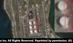 Радио Свобода публикует спутниковый снимок последствий пожара 3 мая на базе компании "Таманьнефтегаз" рядом с портом Тамань. Причиной пожара стало падение беспилотника. На снимке виден пострадавший в результате огня резервуар с топливом.